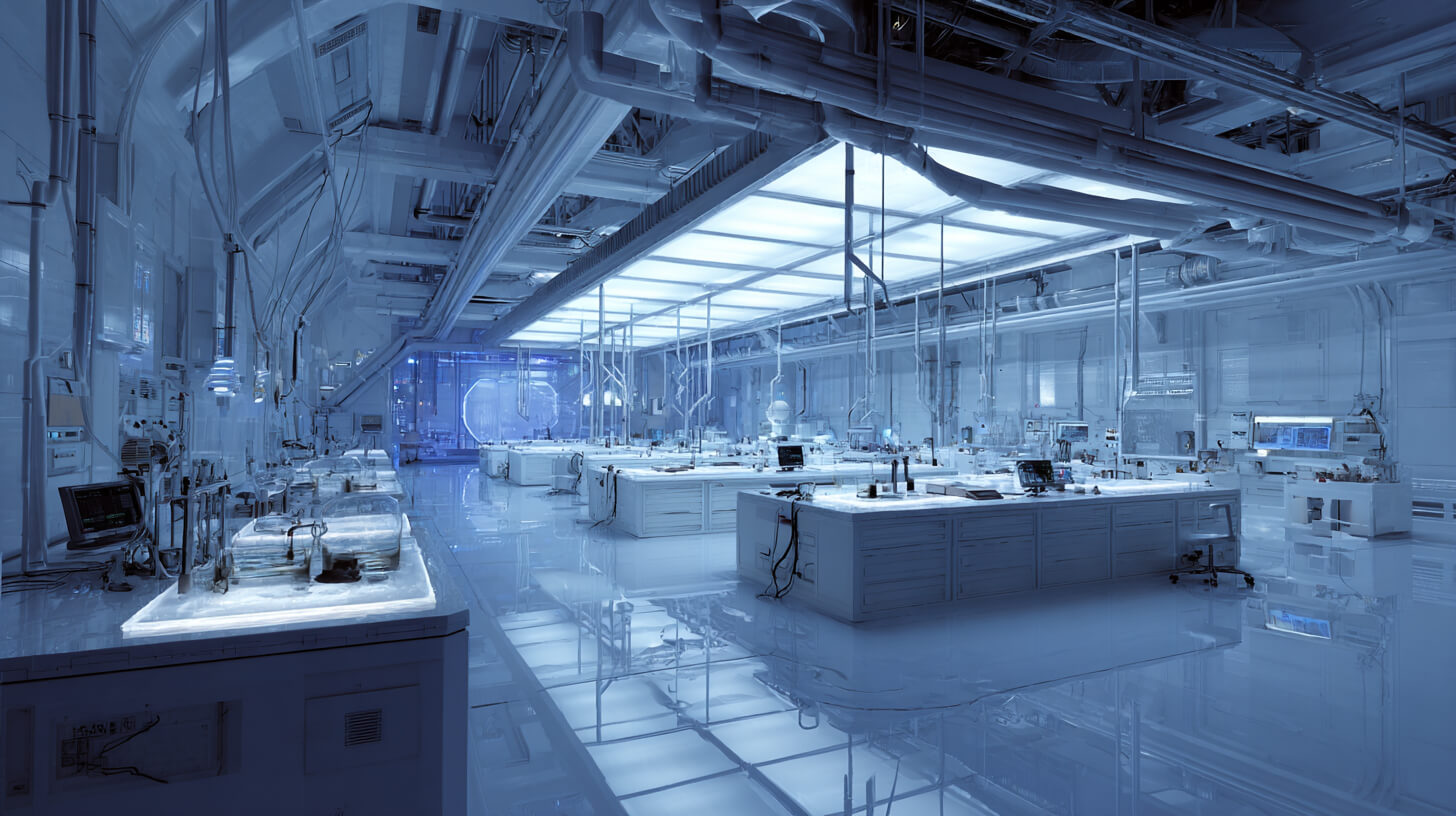 A hidden industrial den humming with illicit chemistry. Cold lights, hot tempers, and the kind of operation you only find if you’re already in too deep.