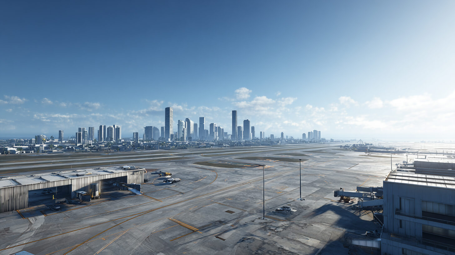 Airports connect all the major cities within Pacifica. Cargo moving and passengers rushing through a skyline that never leaves the view.